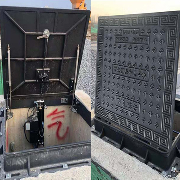 井蓋結(jié)構(gòu)采用鋼板鋼板鍍鋅再烤漆或采用球墨鑄鐵開模鑄造;連接件采用不銹鋼CNC加工;井蓋邊沿采用密封膠條;井蓋上蓋有加強(qiáng)筋、下蓋有內(nèi)板加強(qiáng)筋具有防腐蝕、耐用、承重等特點(diǎn); 井蓋上蓋和液壓泵連接采用特殊的機(jī)械結(jié)構(gòu),可以手動輕松開蓋;在關(guān)蓋時自動和液壓泵結(jié)合。